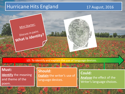 Note the context of the poem consider key terminology and language annotate the poem. It took a hurricane, to bring her closer to the landscape half the night she lay awake, the howling ship of the wind, its gathering rage, like some dark ancestral spectre, fearful and reassuring The poem hurricane hits england is full of natural imagery, mainly because it's about the effect of wind on the landscape. Home anaphora free verse caribbean england. Hurricane hits england about a hurricane that came across from the caribbean and hit the south coast of england (sussex).